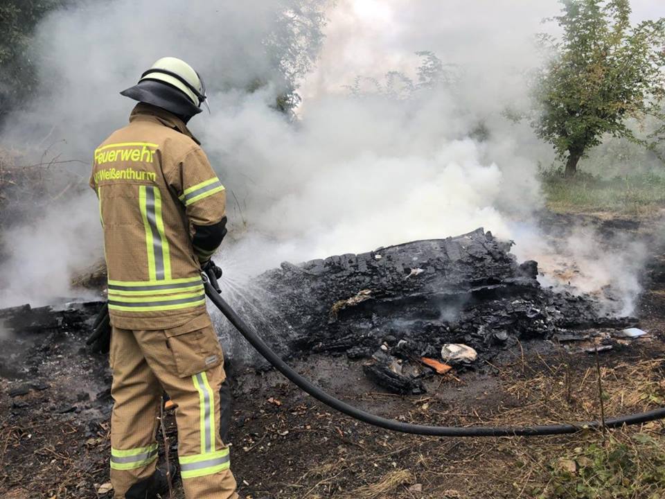 Das Feuer wurde aufgrund der Witterung gründlich abgelöscht und Glutnester eliminiert.