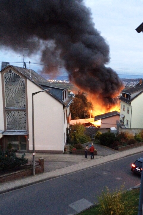 Bereits auf der Anfahrt zeigte sich, dass es sich um keinen kleinen Brand handelte. Die Rauchsäule war im Neuwieder Becken gut zu erkennen.