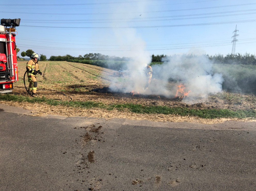 Schnell wurde die Leitstelle in Koblenz per Funk informiert, dass wir zur Erkundung Richtung Kettiger Umspannwerk unterwegs seien. Vor Ort zeigte sich in der Tat ein brennender, unbeaufsichtigter, größerer Strohhaufen.